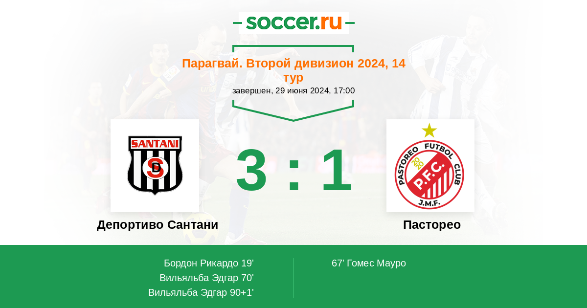 Протокол матча Депортиво Сантани против Пасторео