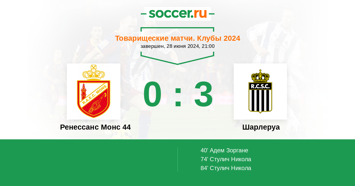 Протокол матча Ренессанс Монс 44 против Шарлеруа