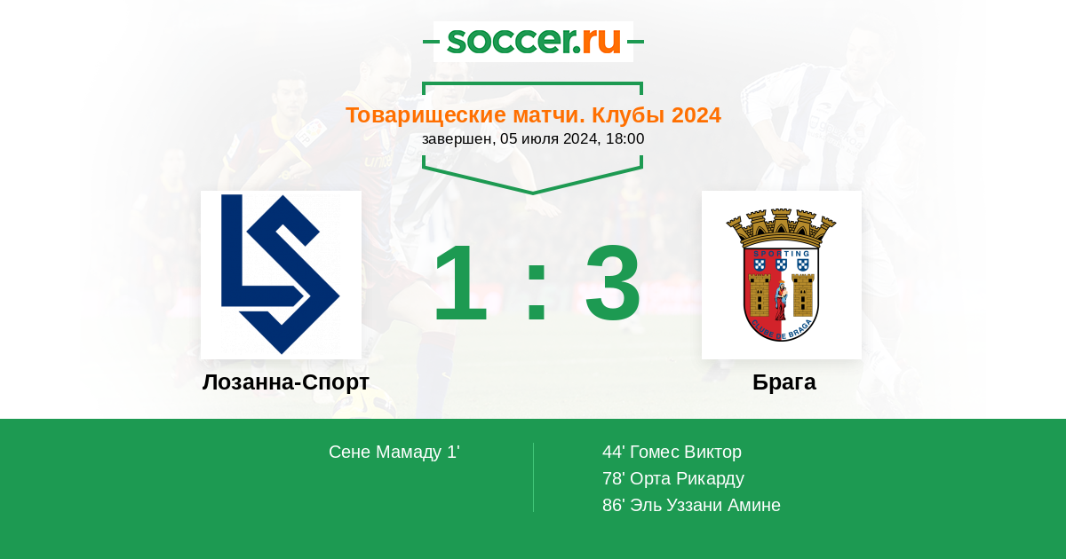 Протокол матча Лозанна-Спорт против Брага