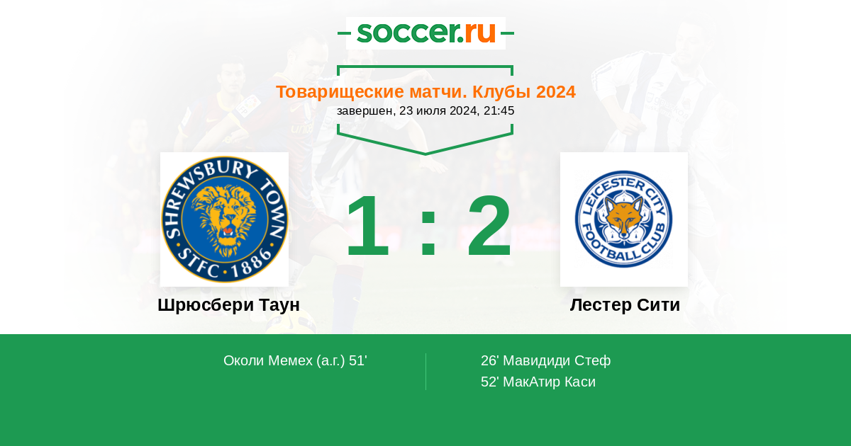 Протокол матча Шрюсбери Таун против Лестер Сити