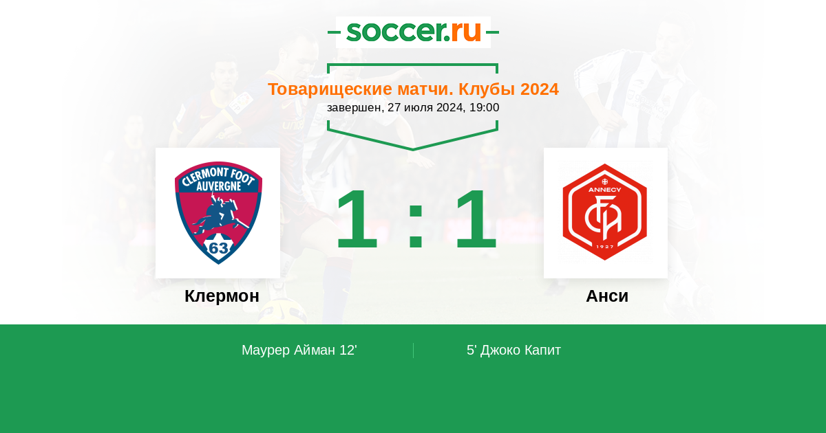 Протокол матча Клермон против Анси