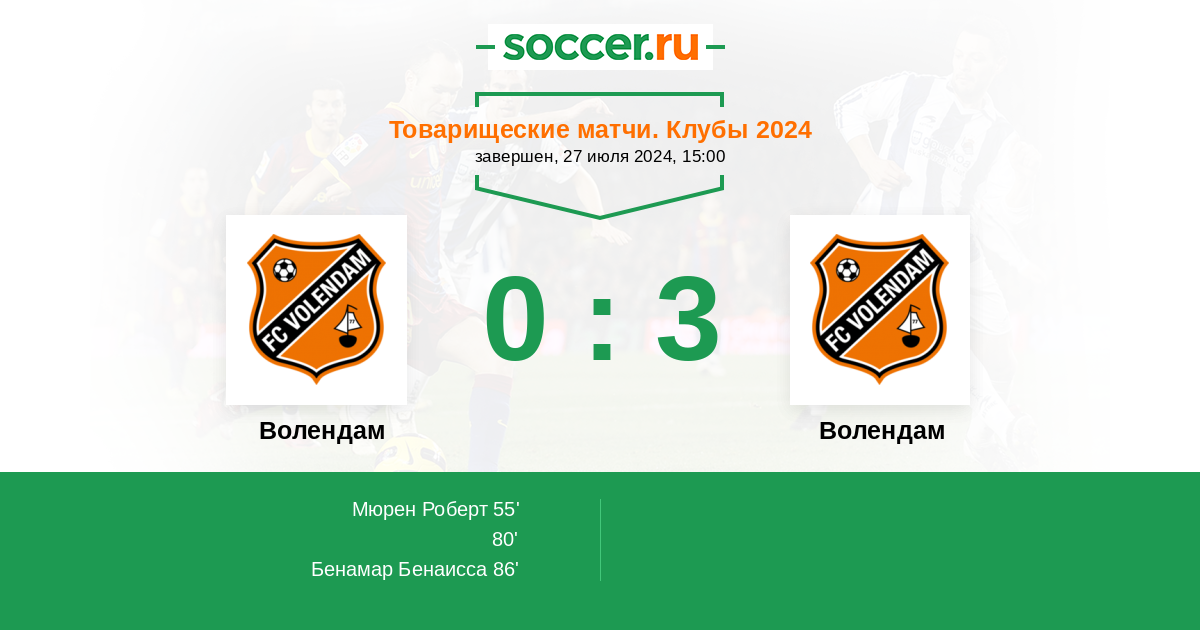 Протокол матча Волендам против Волендам