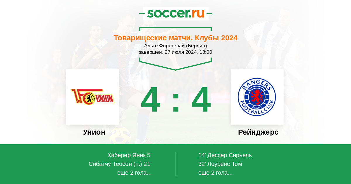 Протокол матча Унион против Рейнджерс