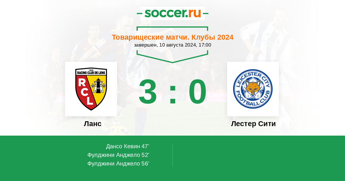 Протокол матча Ланс против Лестер Сити