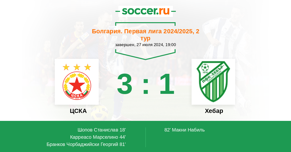 Протокол матча ЦСКА против Хебар