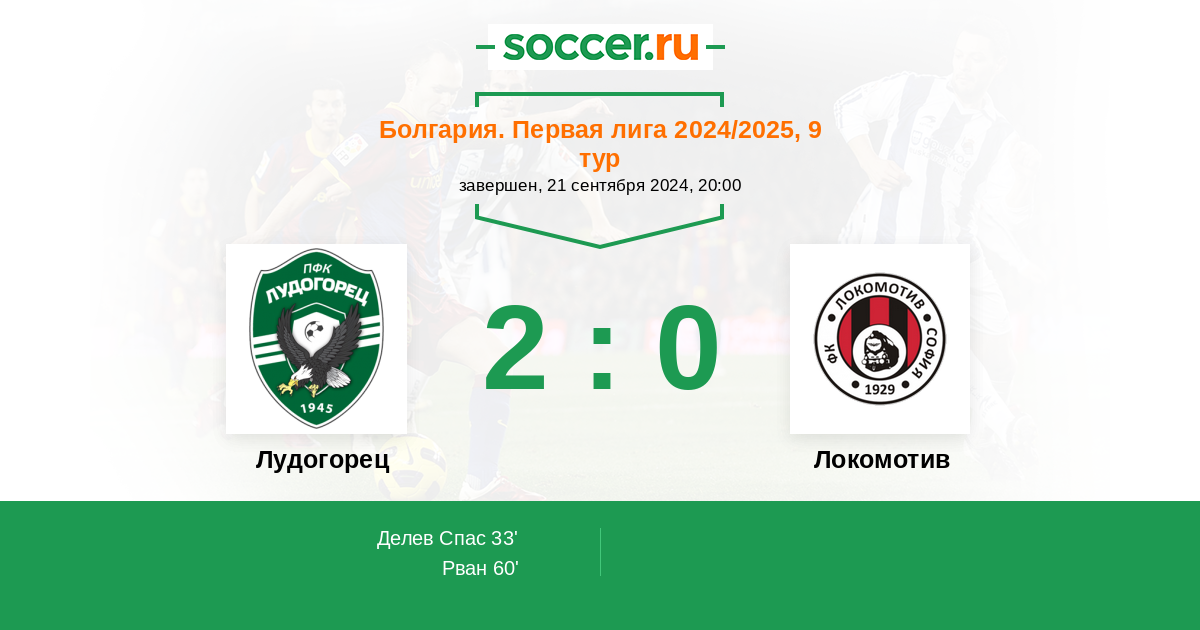 Протокол матча Лудогорец против Локомотив