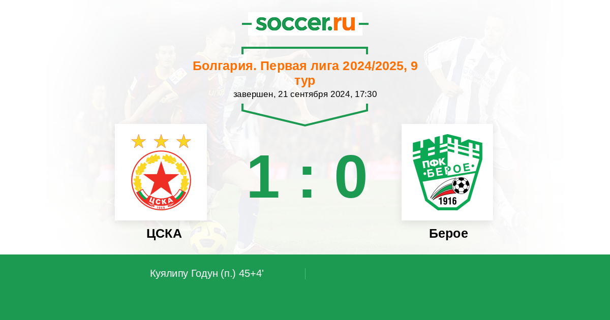 Протокол матча ЦСКА против Берое
