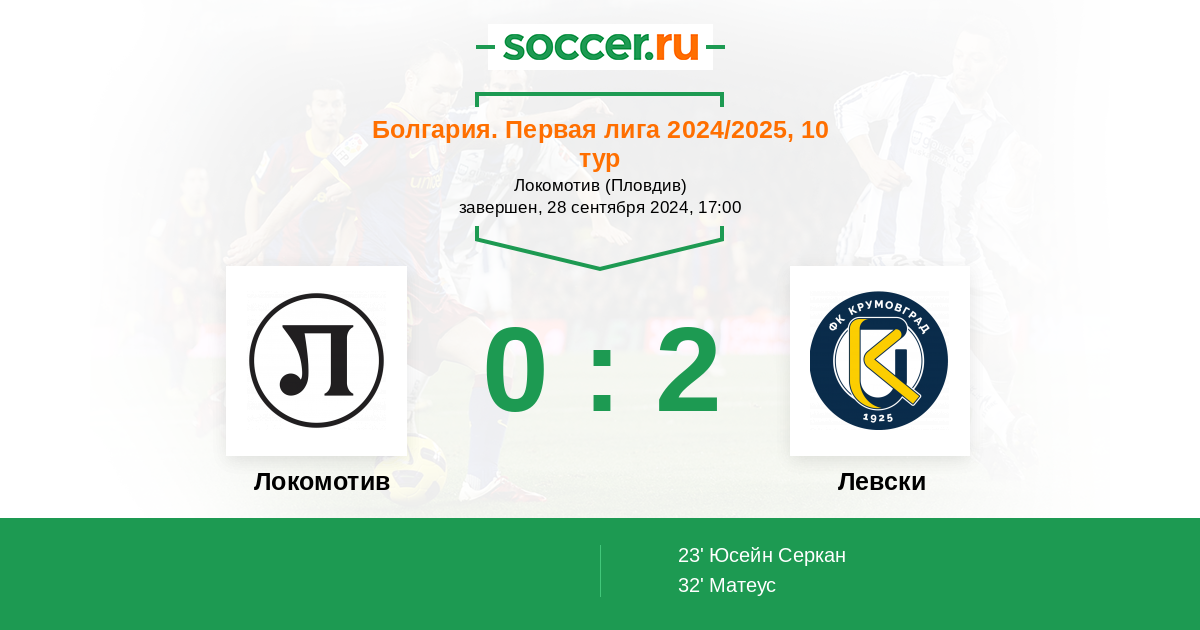 Протокол матча Локомотив против Левски