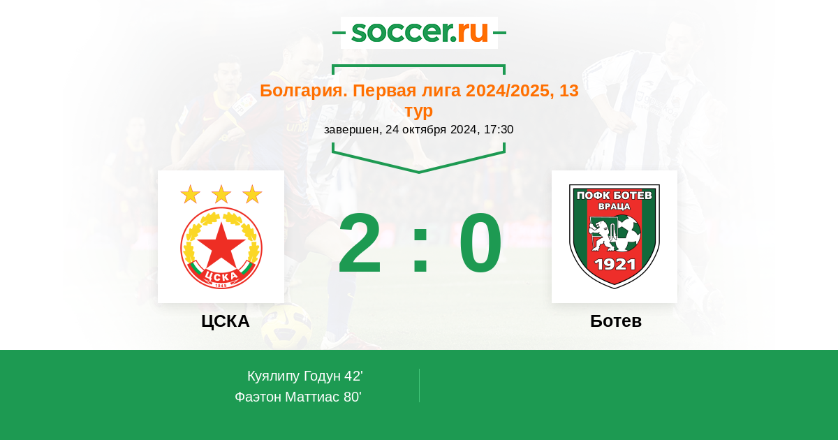 42' (1:0) Куялипу Годун (77) (Шопов Станислав (8))