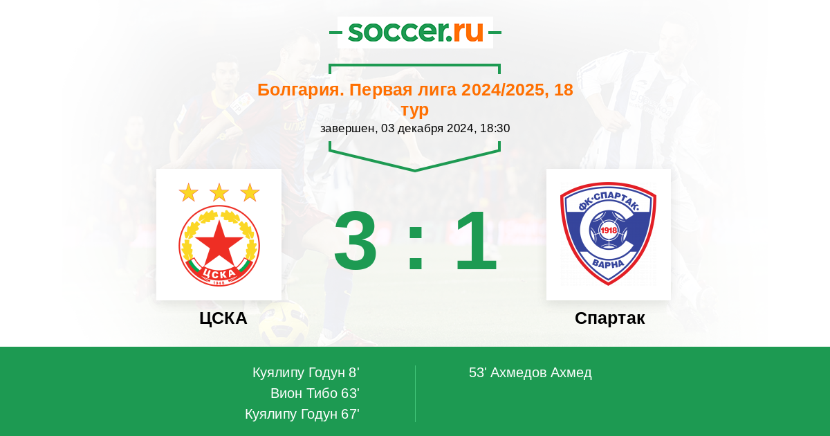 Протокол матча ЦСКА против Спартак