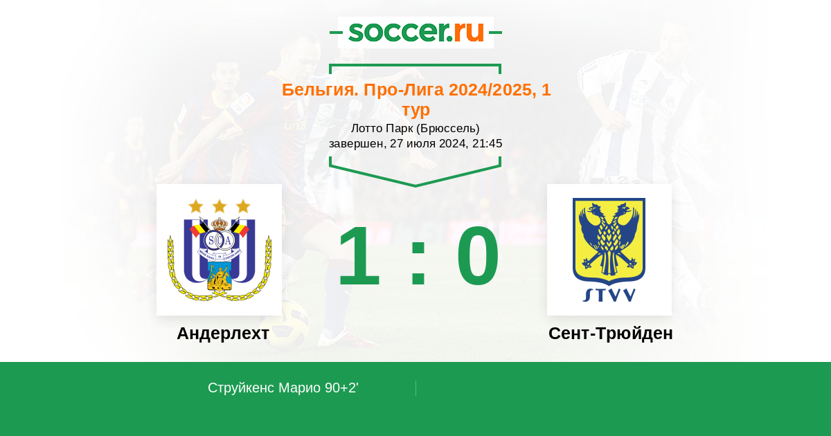 Протокол матча Андерлехт против Сент-Трюйден