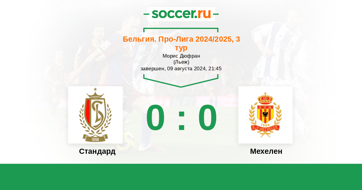 Протокол матча Стандард против Мехелен