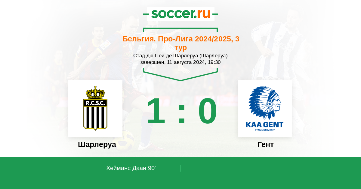Протокол матча Шарлеруа против Гент