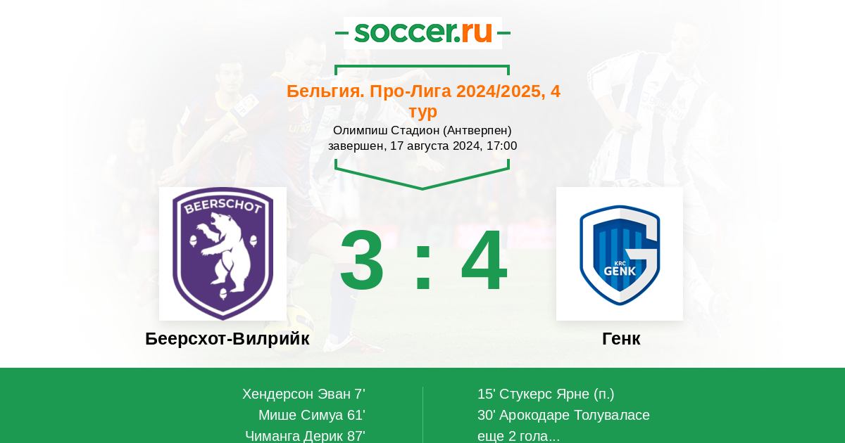 Протокол матча Беерсхот-Вилрийк против Генк