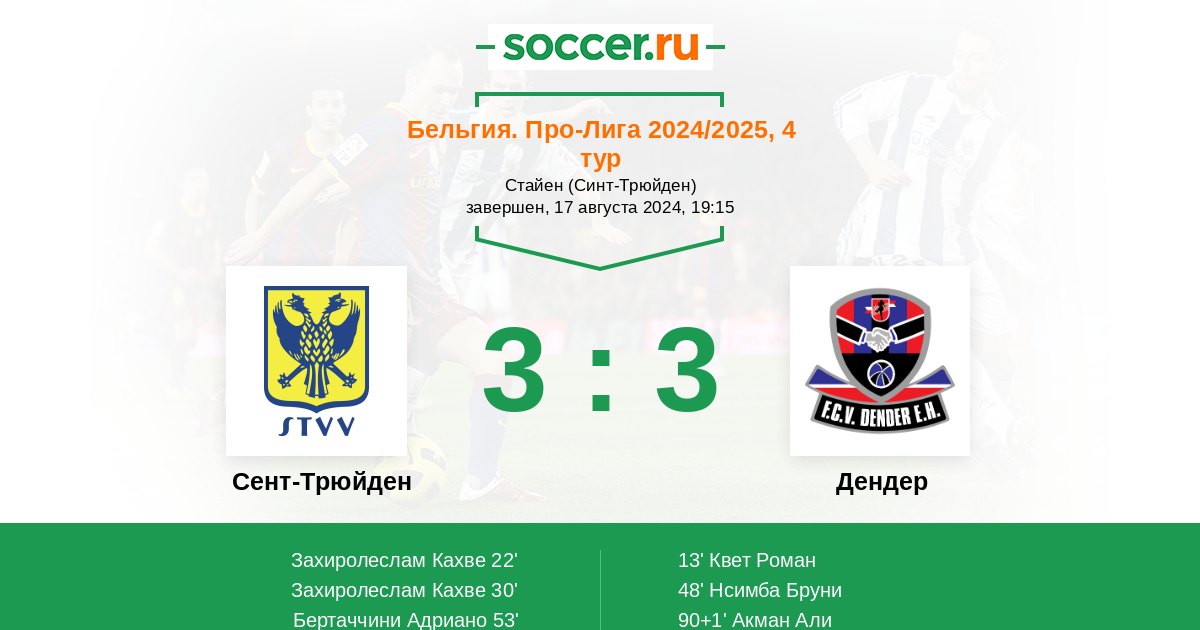 Протокол матча Сент-Трюйден против Дендер