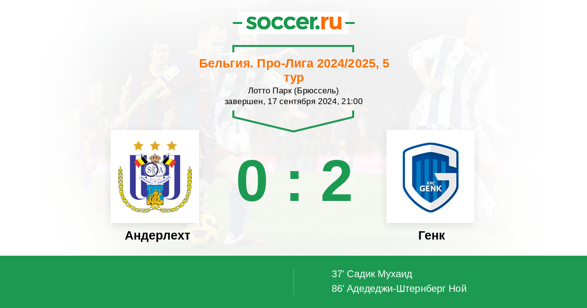 Протокол матча Андерлехт против Генк