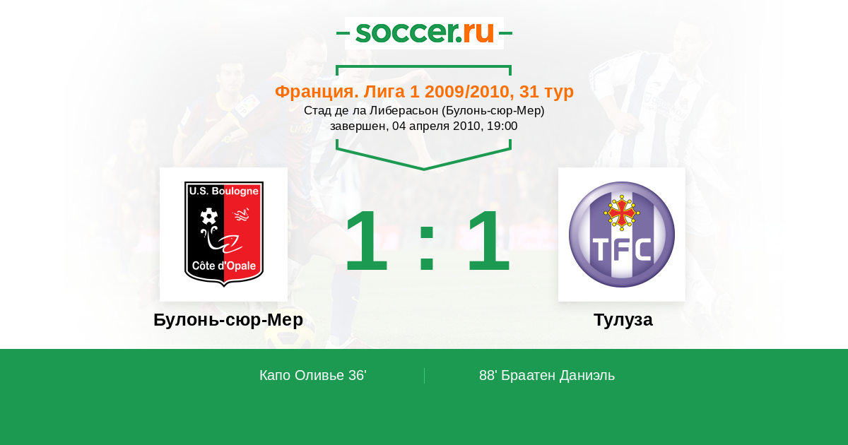 Протокол матча Булонь-сюр-Мер против Тулуза