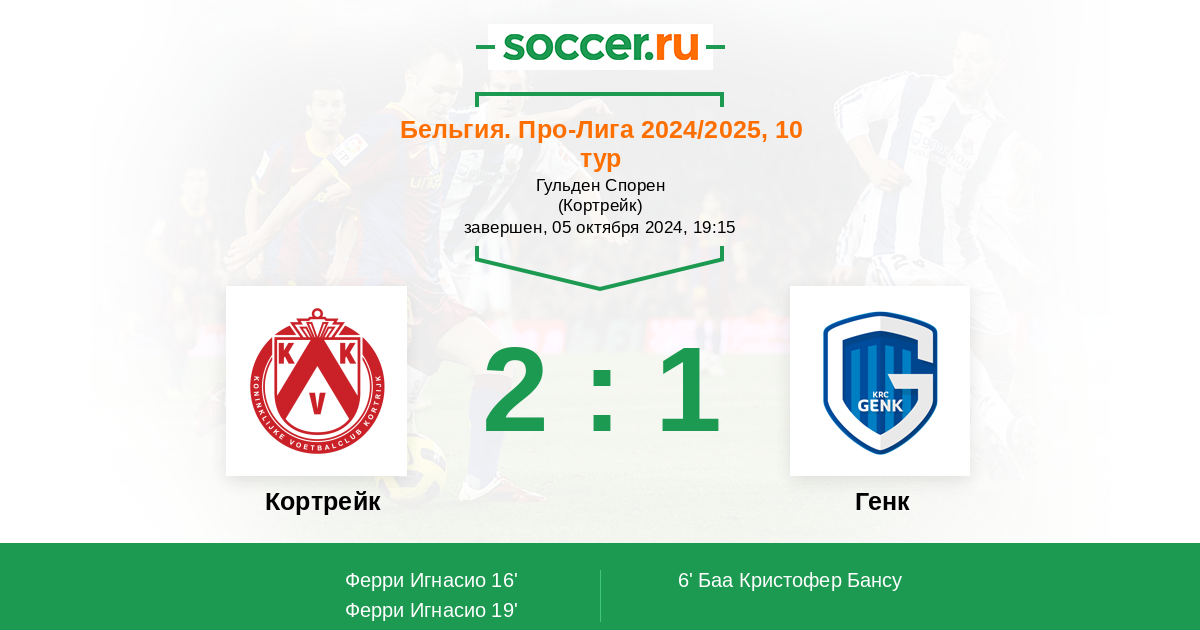 Протокол матча Кортрейк против Генк