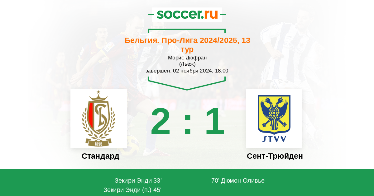 Протокол матча Стандард против Сент-Трюйден