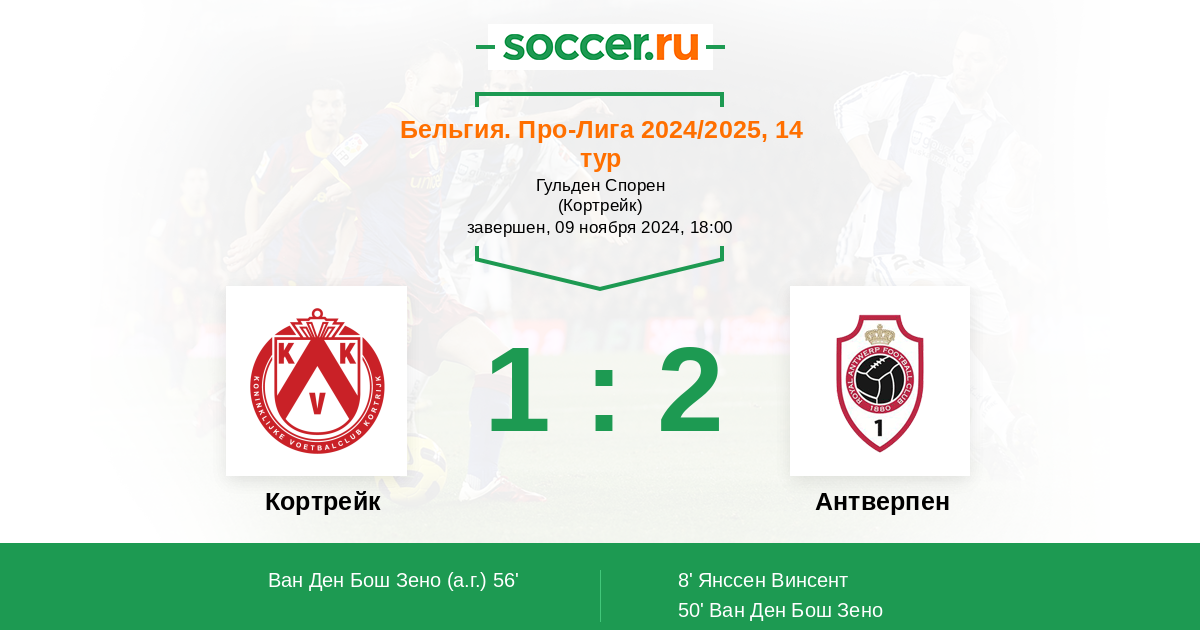 Протокол матча Кортрейк против Антверпен
