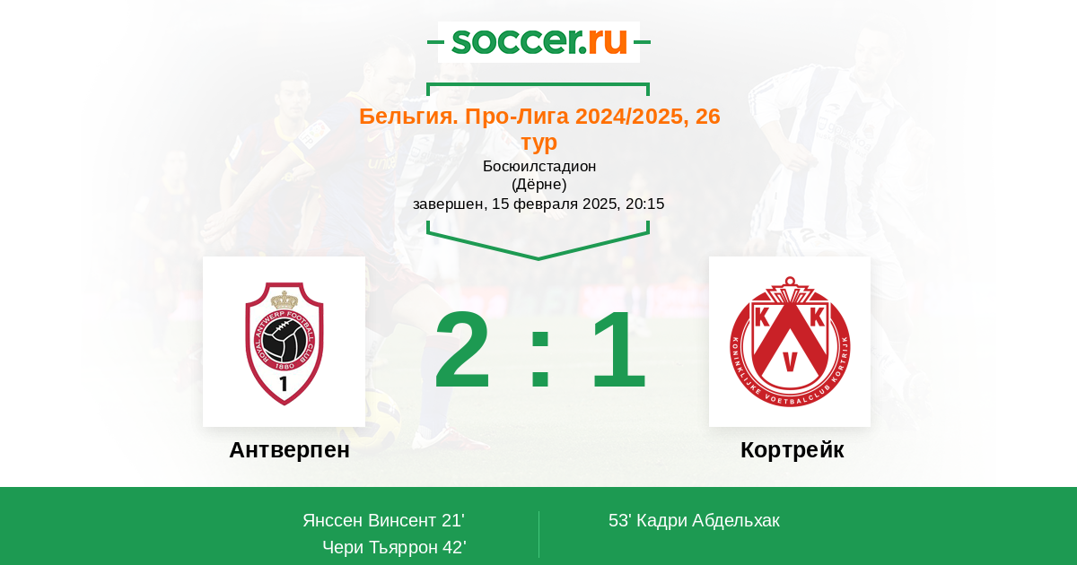 21' (1:0) Янссен Винсент (18) (Чери Тьяррон (9))