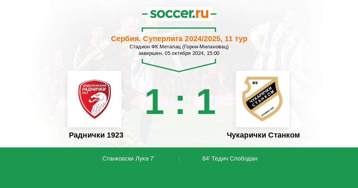 Гол84' (1:1) Тедич Слободан (9) (Йованович Вукашин (18))
