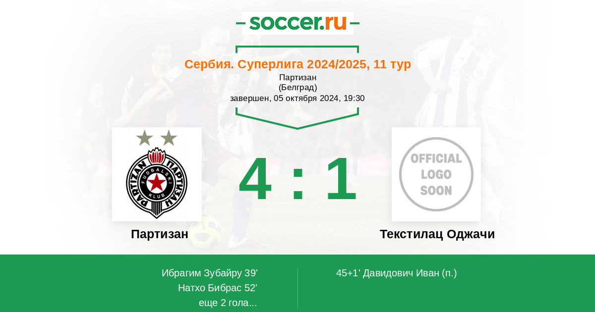 Протокол матча Партизан против Текстилац Оджачи