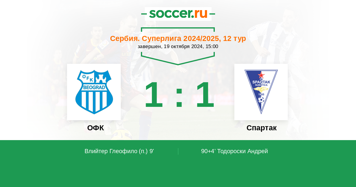 Протокол матча ОФК против Спартак Суботица