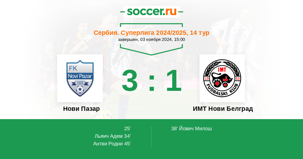 Протокол матча Нови Пазар против ИМТ Нови Белград