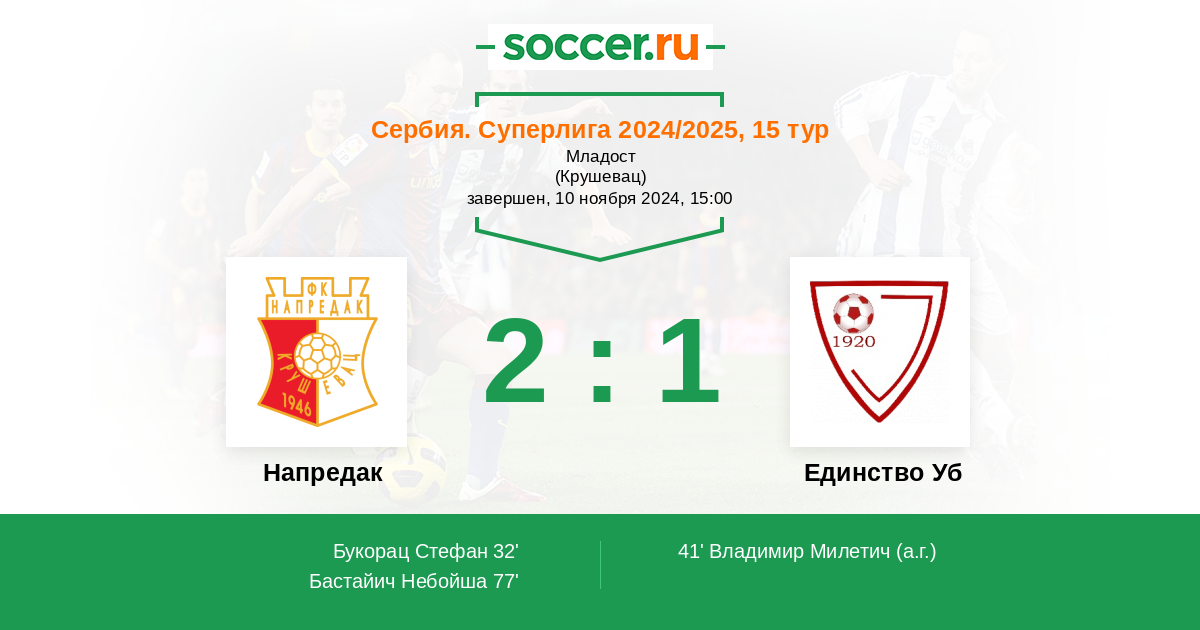 Протокол матча Напредак против Единство Уб