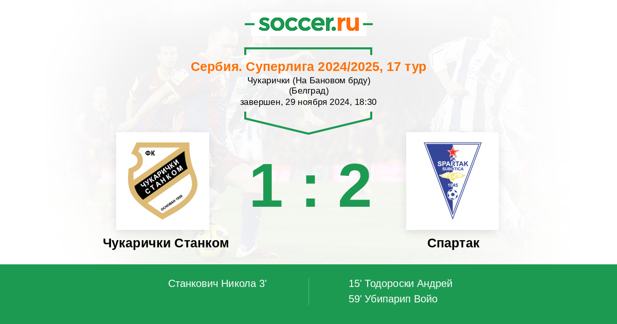 Протокол матча Чукарички Станком против Спартак Суботица