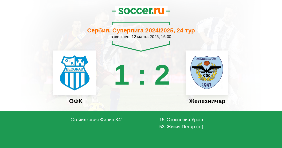 Протокол матча ОФК против Железничар