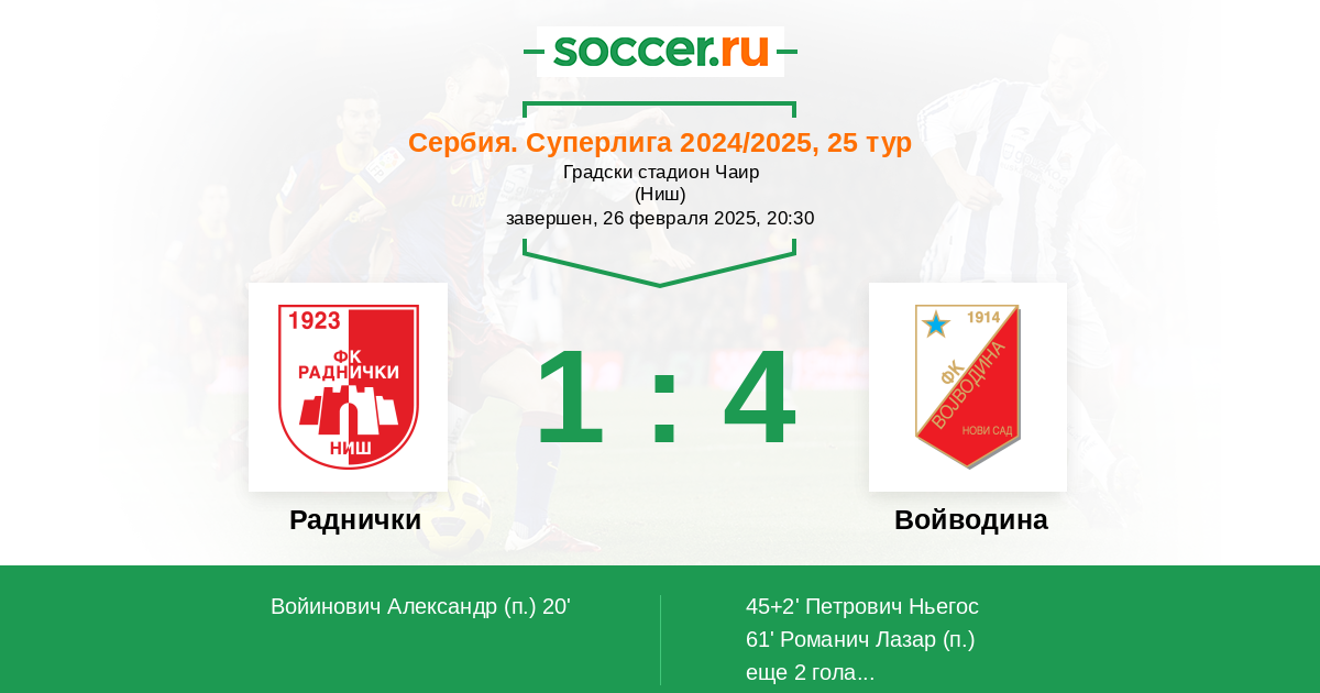 Протокол матча Раднички против Войводина