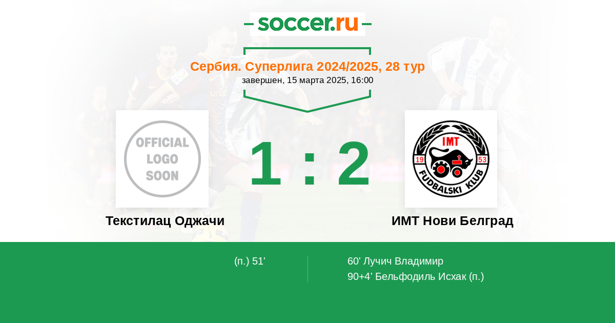 Протокол матча Текстилац Оджачи против ИМТ Нови Белград