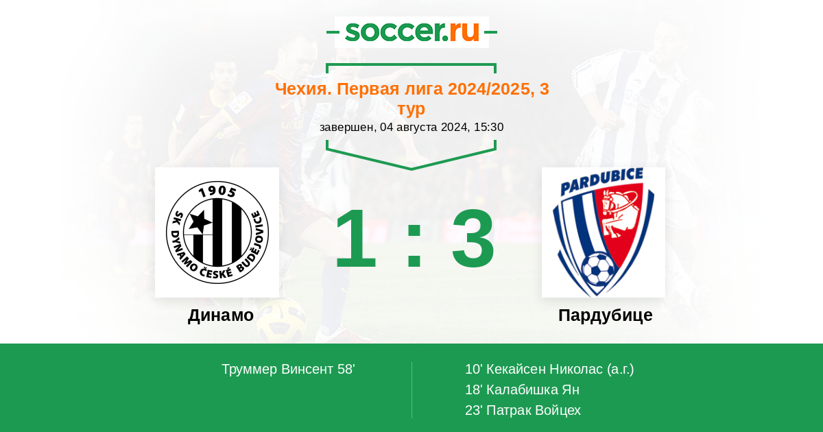 Протокол матча Динамо против Пардубице