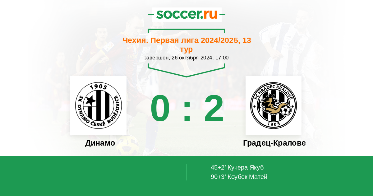 Протокол матча Динамо против Градец-Кралове
