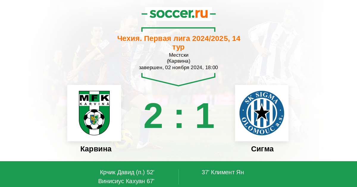 Протокол матча Карвина против Сигма