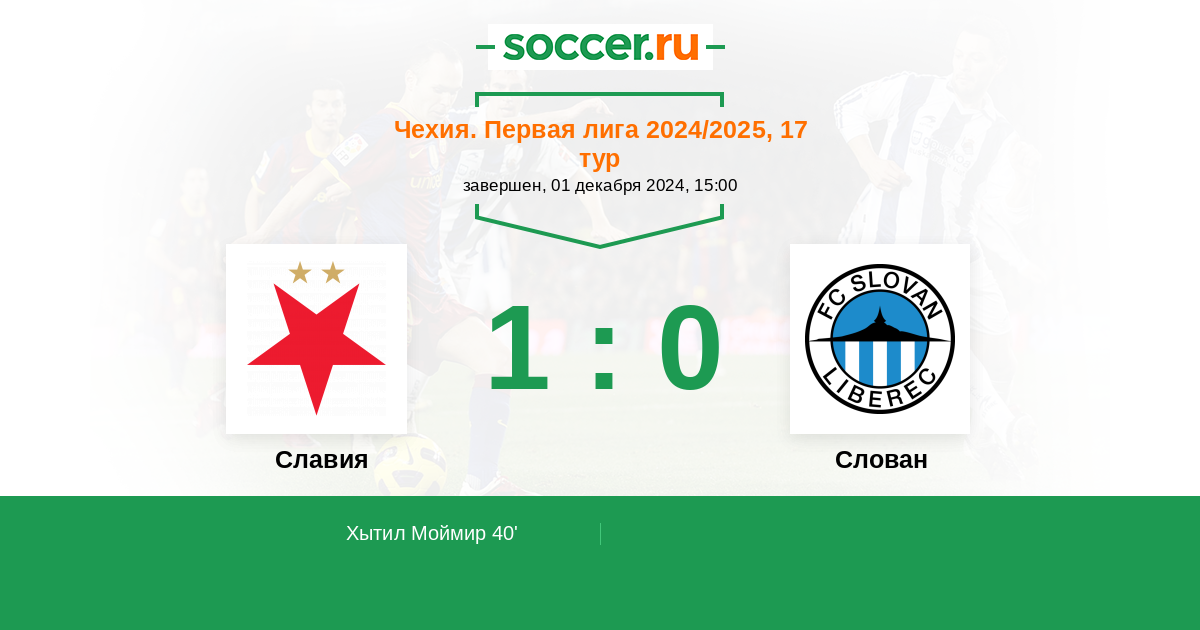 40' (1:0) Хытил Моймир (13) (D. Pech)