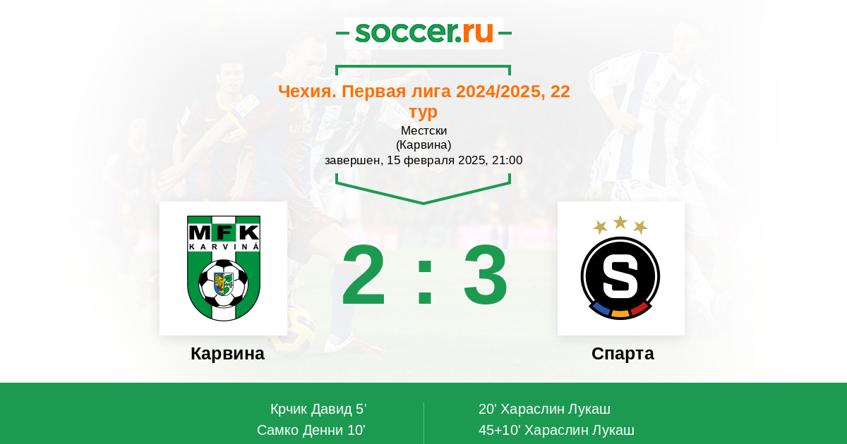 Протокол матча Карвина против Спарта