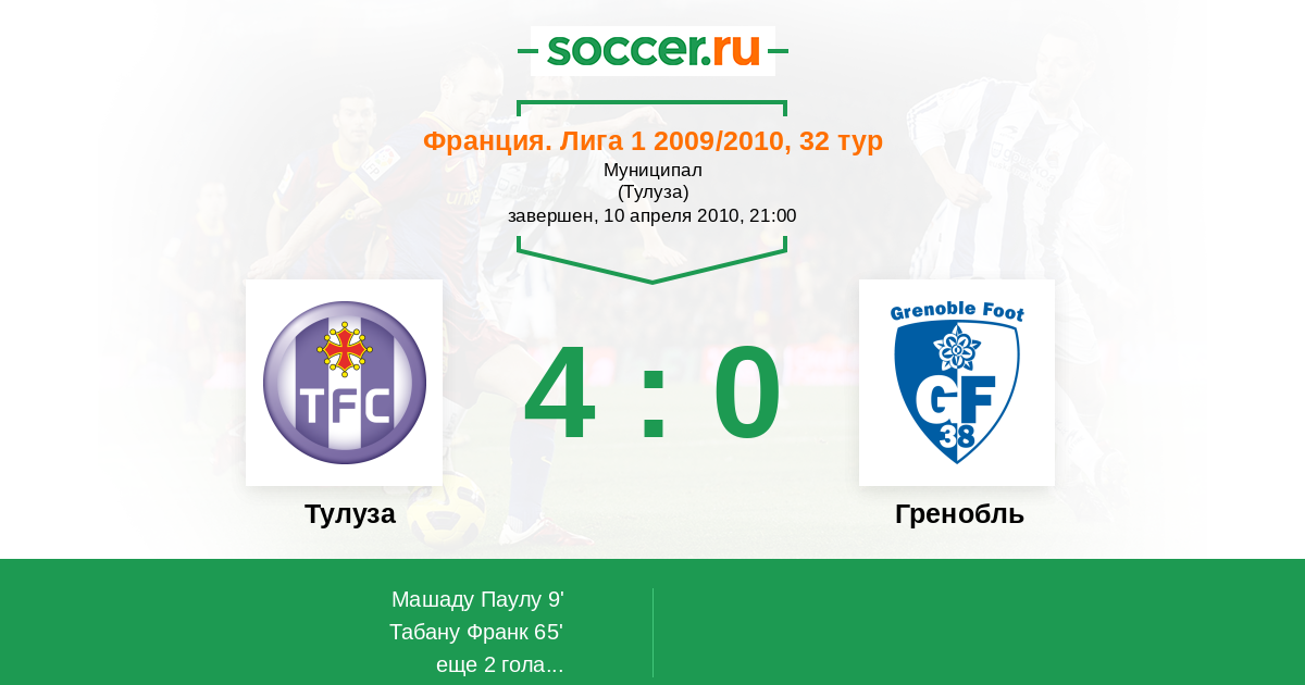 Протокол матча Тулуза против Гренобль