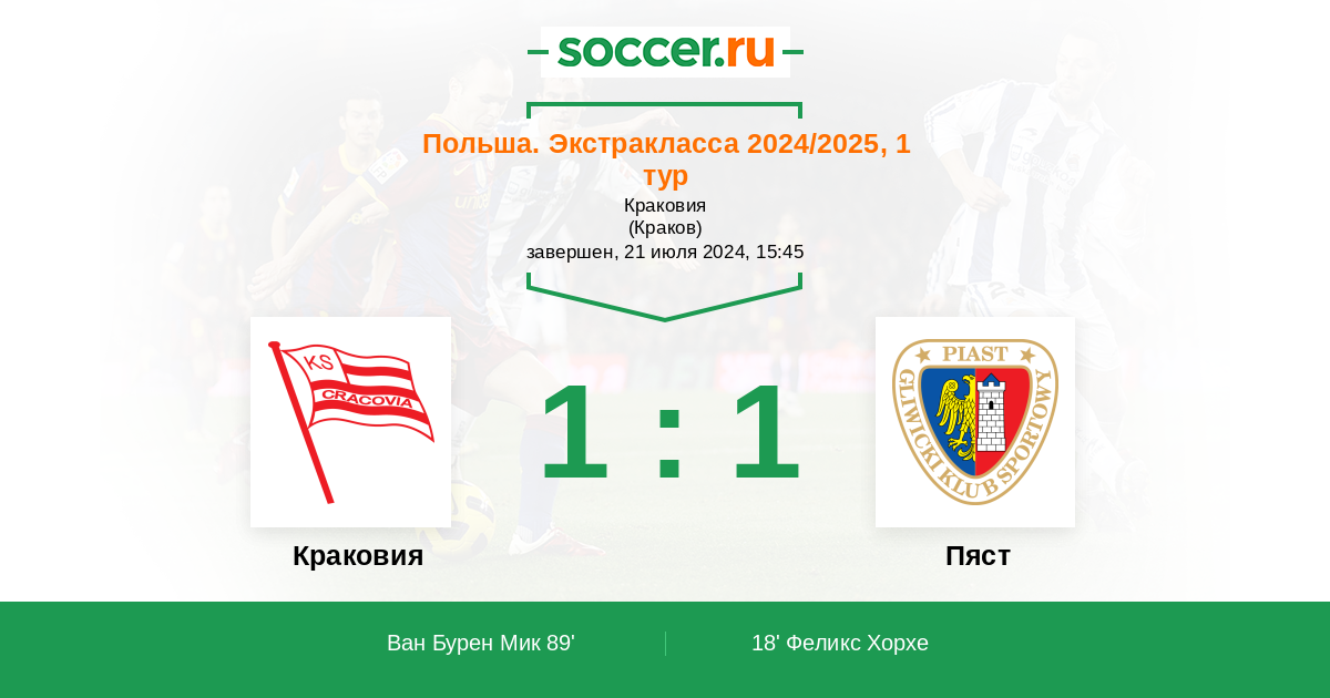 Протокол матча Краковия против Пяст
