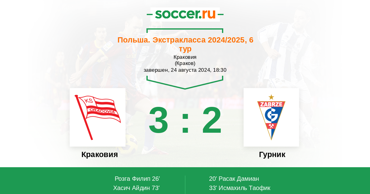 Протокол матча Краковия против Гурник