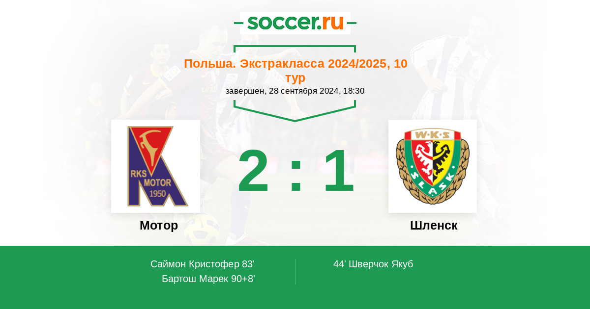 Протокол матча Мотор против Шленск