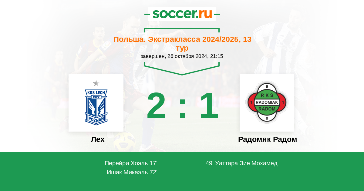 Протокол матча Лех против Радомяк Радом