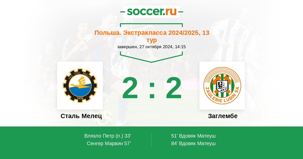 Протокол матча Сталь Мелец против Заглембе