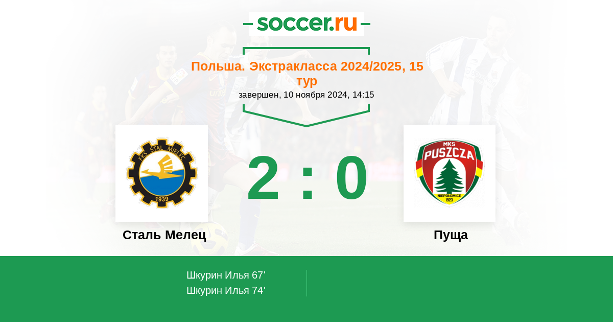 Протокол матча Сталь Мелец против Пуща