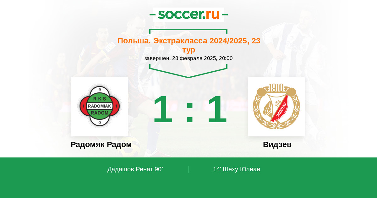 Протокол матча Радомяк Радом против Видзев