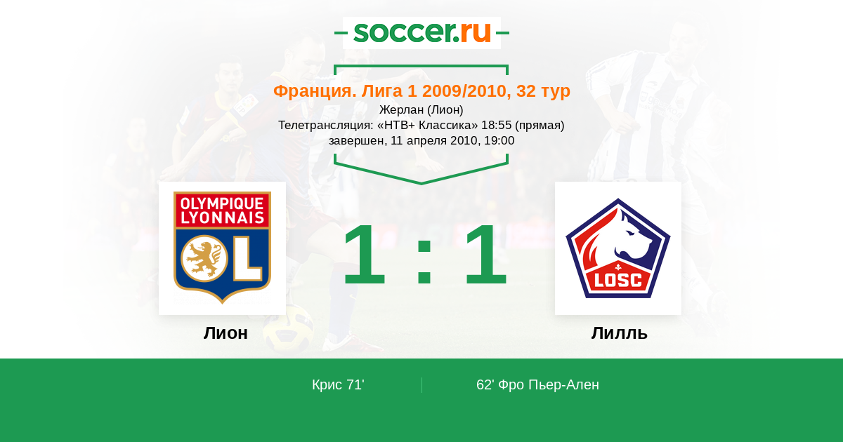 Протокол матча Лион против Лилль