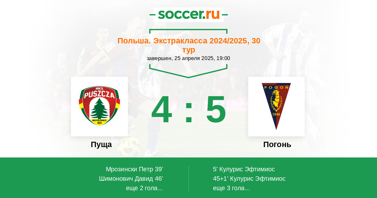 Протокол матча Пуща против Погонь