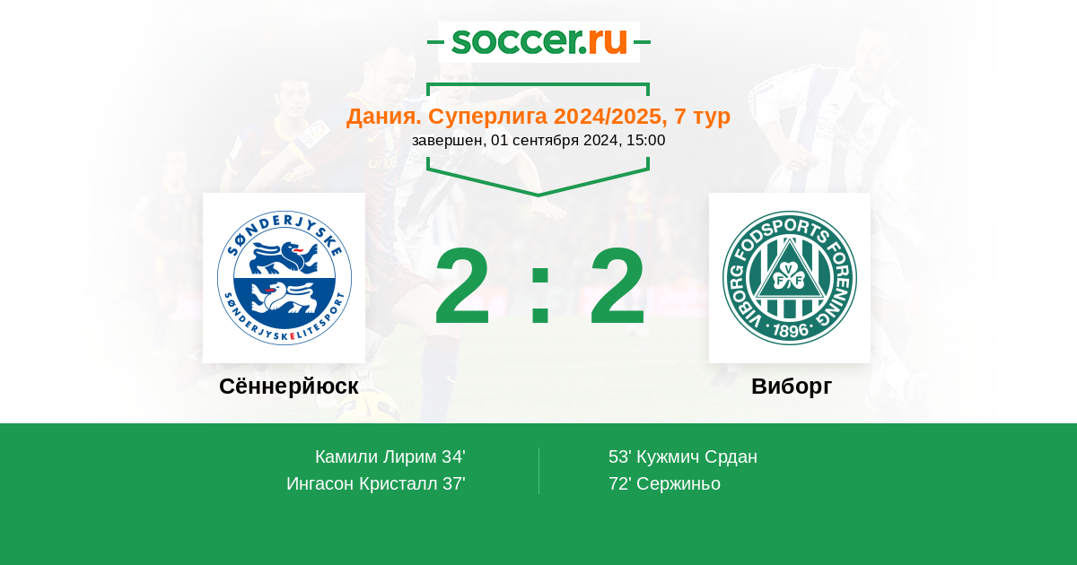 Протокол матча Сённерйюск против Виборг